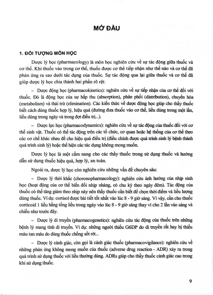 Cung cấp những kiến thức cơ bản, cập nhật về dược lý như: dược động học, tác dụng và cơ chế' tác dụng, tác dụng không mong muốn và áp dụng đều trị của thuốc.