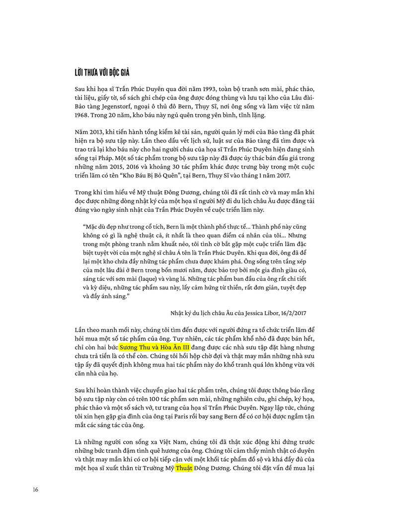 "DUYÊN: Hiện thực, Trừu tượng, Thiền họa" giới thiệu về cuộc đời, sự nghiệp sáng tác và các tác phẩm của họa sĩ Trần Phúc Duyên (1923–1993) – người họa sĩ thuộc thế hệ sau cùng của Trường Cao đẳng Mỹ thuật Đông Dương nhưng có một cuộc đời và sự nghiệp sáng tạo khác biệt so với các nghệ sĩ cùng thời.