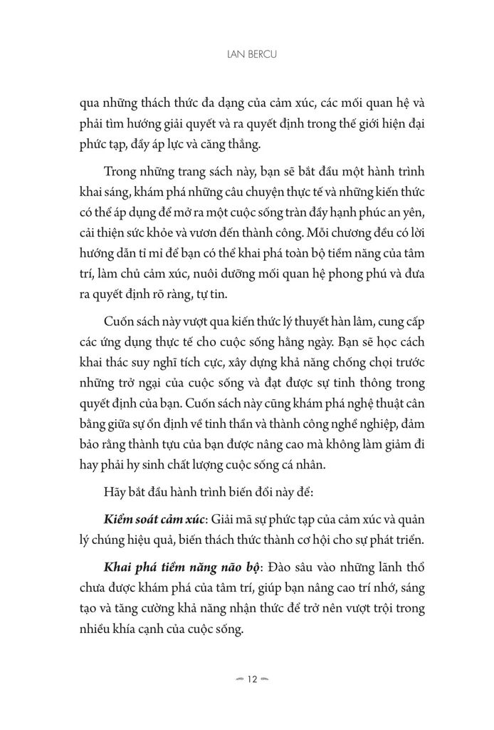 Cuốn sách này không chỉ là kho tàng kiến thức, mà còn là ngọn hải đăng dẫn đường cho những ai đang trải qua thách thức đa dạng của cảm xúc, các mối quan hệ, hoặc đăng gặp khó khăn trong quá trình ra quyết định giữa thế giới hiện đại phức tạp, đầy áp lực và căng thẳng.