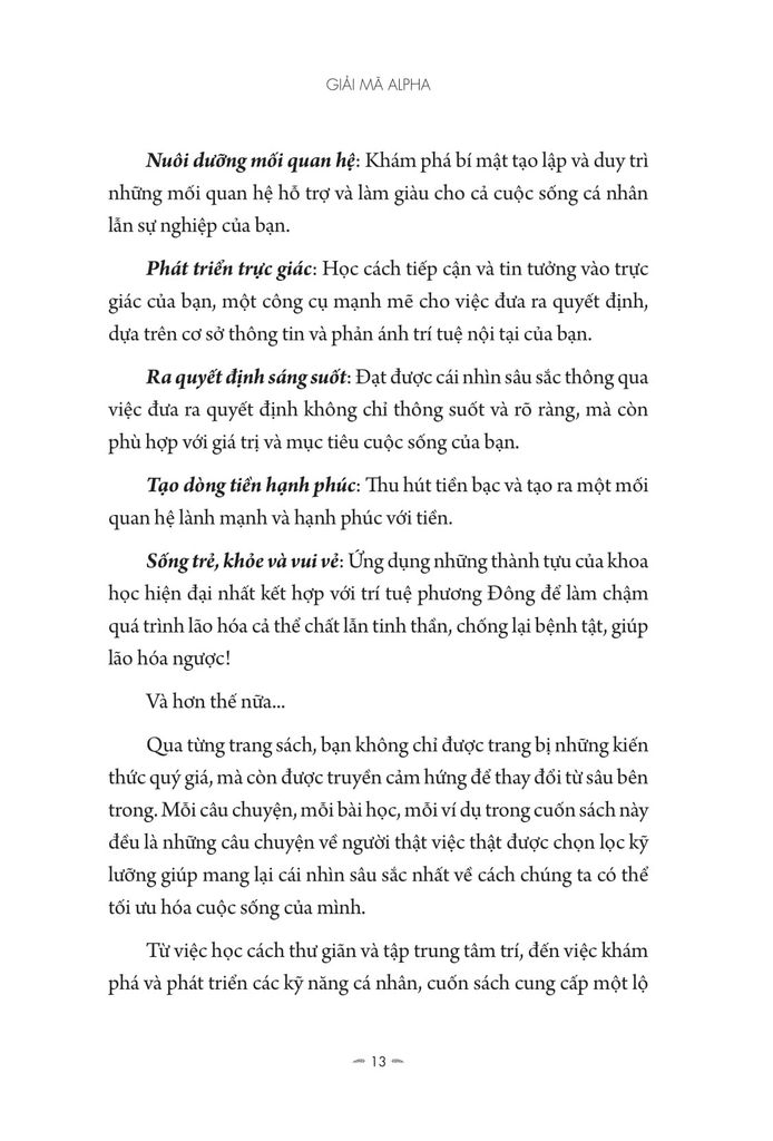 Từ việc học cách thư giãn và tập trung tâm trí, đến việc khám phá và phát triển các kỹ năng cá nhân, cuốn sách cung cấp một lộ trình toàn diện để nâng cấp bản thân và cuộc sống của bạn. Nó không chỉ là về việc sống lâu hơn mà còn về việc sống trọn vẹn, khai thác từng phút giây của cuộc sống. Hãy bắt đầu hành trình biến đổi này để: