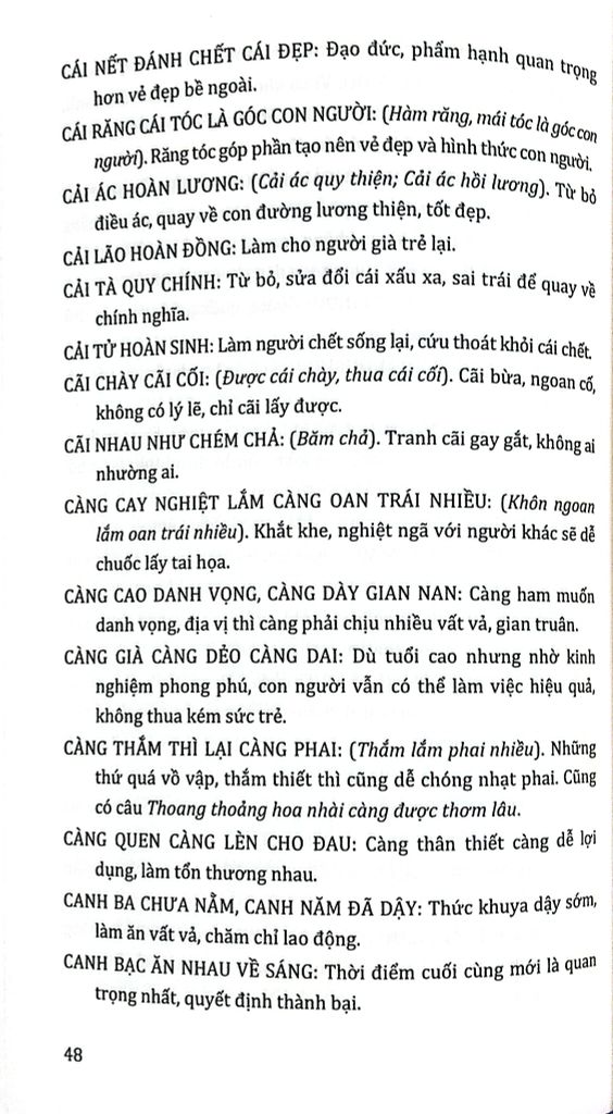 Ngoài việc giải nghĩa, cuốn sách còn mở ra những góc nhìn đa chiều về văn hóa và nhân sinh quan của người Việt, giúp chúng ta hiểu rõ hơn về nền tảng tư tưởng đã nuôi dưỡng bao thế hệ. Đó là tinh thần đoàn kết, lòng hiếu nghĩa, đức tính kiên trì, sự khéo léo trong đối nhân xử thế - những giá trị đã trở thành bản sắc của dân tộc Việt Nam qua hàng nghìn năm lịch sử.