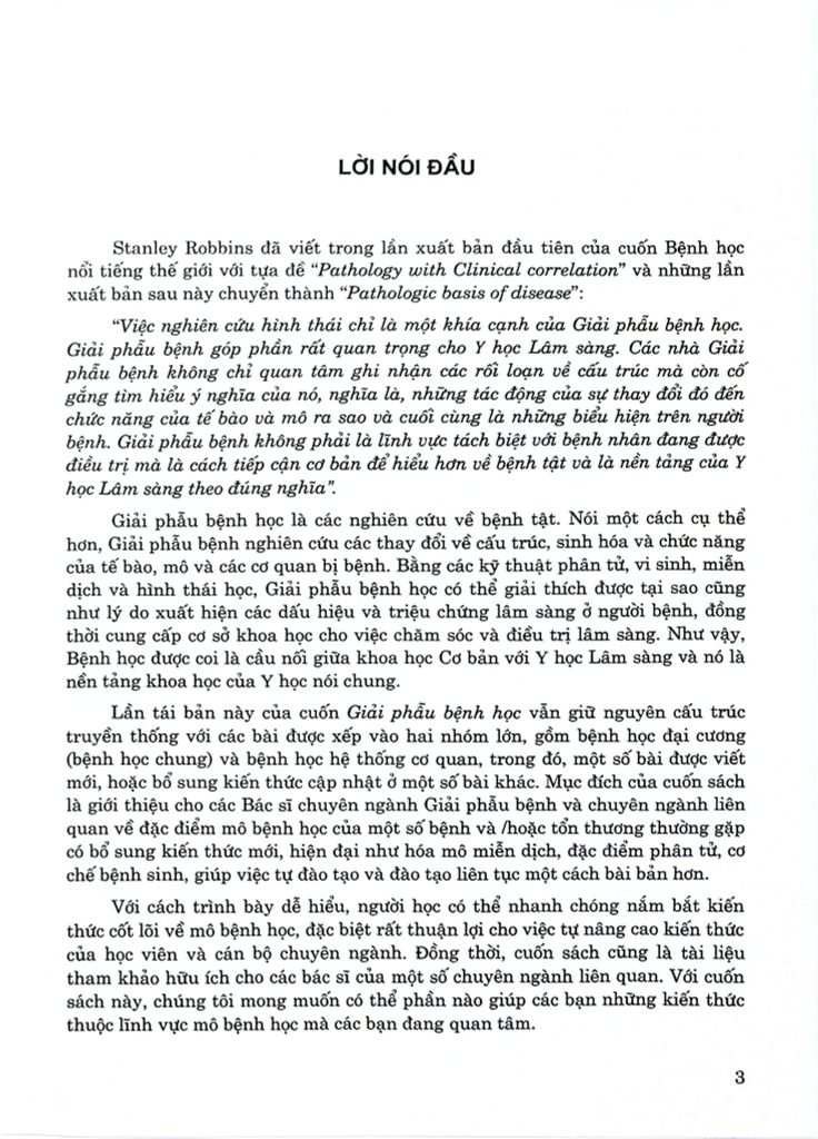 Lần tái bản này của cuốn Giải phẫu bệnh học vẫn giữ nguyên cấu trúc truyền thống với các bài được xếp vào hai nhóm lớn, gồm bệnh học đại cương (bệnh học chung) và bệnh học hệ thống cơ quan, trong đó, một số bài được viết mới, hoặc bổ sung kiến thức cập nhật ở một số bài khác. Mục đích của cuốn sách là giới thiệu cho các Bác sĩ chuyên ngành Giải phẫu bệnh và chuyên ngành liên quan về đặc điểm mô bệnh học của một số bệnh và /hoặc tổn thương thường gặp có bổ sung kiến thức mới, hiện đại như hóa mô miễn dịch, đặc điểm phân tử, cơ chế bệnh sinh, giúp việc tự đào tạo và đào tạo liên tục một cách bài bản hơn.