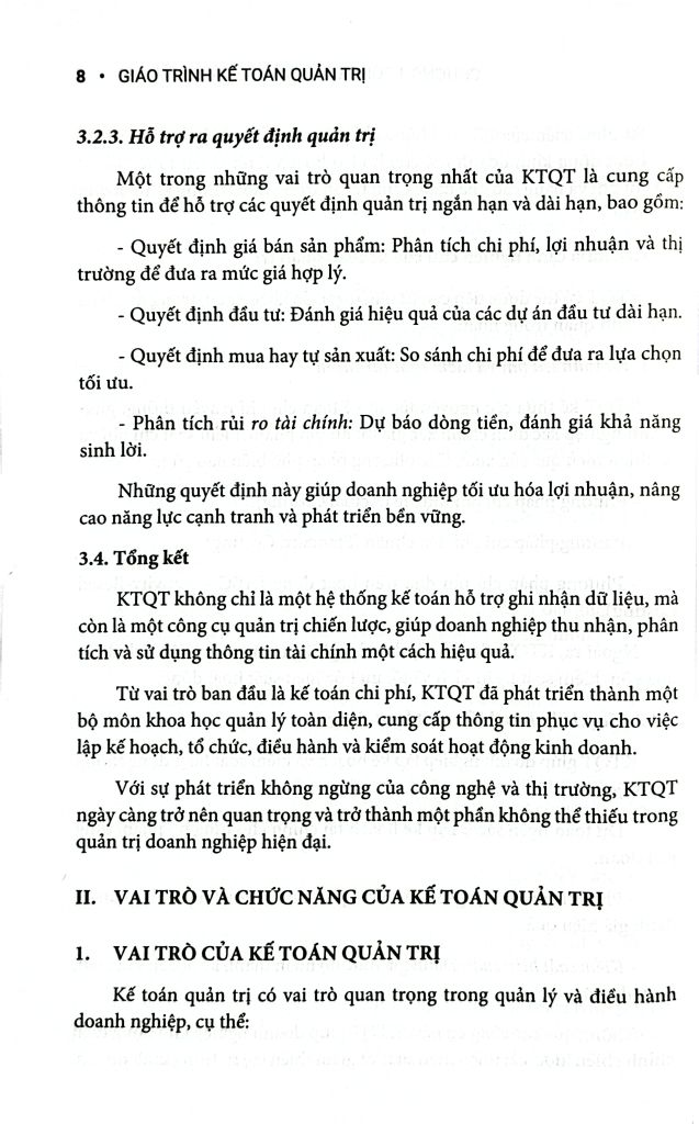 Chương 6 đến Chương 8 đi sâu vào ứng dụng kế toán trong các quyết định đầu tư, định giá sản phẩm, phân tích hiệu quả bộ phận và đánh giá trách nhiệm quản lý.