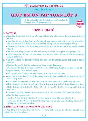 Giúp Em Ôn Tập Toán Lớp 8 (Dùng Chung Cho Các Bộ SGK Hiện Hành) cung cấp toàn bộ kiến thức giúp học sinh dễ dàng tự ôn tập.