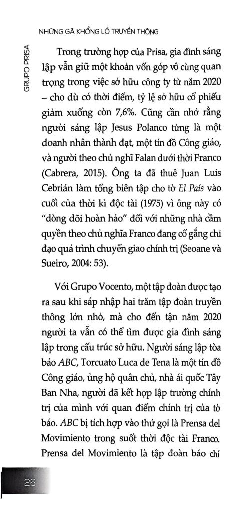 GRUPO PRISA – Truyền thông nâng cao dân trí và vì tiếng nói của người dân không chỉ là câu chuyện về một tập đoàn truyền thông; đây còn là phản ánh sâu sắc về mối liên kết giữa truyền thông, chính trị, và xã hội trong lịch sử hiện đại của Tây Ban Nha. Cuốn sách mở ra cái nhìn toàn diện về cách thế giới truyền thông Tây Ban Nha phát triển song hành và đôi khi là công cụ hóa trong bối cảnh chính trị đầy biến động.