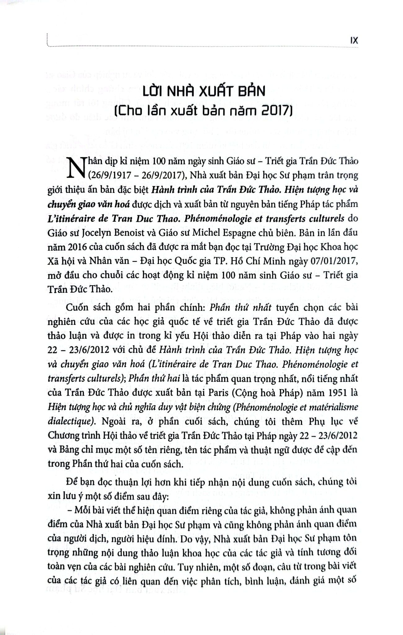 Hành Trình Của Trần Đức Thảo - Hiện Tượng Học Và Chuyển Giao Văn Hóa (Bìa Cứng) - Jocelyn Benoist