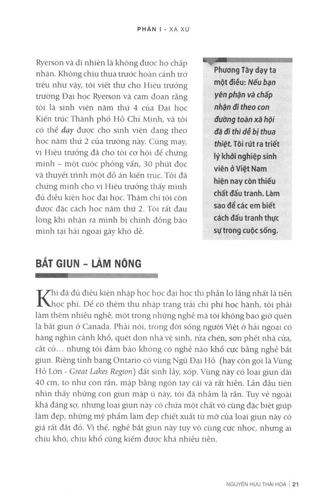 “Giấc mơ quốc gia khởi nghiệp – Hành trình xa xứ” là câu chuyện về con đường khởi nghiệp doanh nhân Nguyễn Hữu Thái Hòa, cái tên quen thuộc cả ở lĩnh vực kinh doanh, công nghệ lẫn văn nghệ. Trở về sau hơn 17 năm học tập và làm việc tại các quốc gia tiên tiến như Canada, Pháp… khái niệm “khởi nghiệp” của Nguyễn Hữu Thái Hòa không gói gọn trong việc tự doanh mà còn bao hàm cả việc lập thân, gây dựng nhân hiệu… Đó chính là lý do, quyển tự truyện này không chỉ có giá trị với giới start-up mà còn có thể trở chiếc la bàn định hướng cho phần lớn thanh niên Việt Nam.
