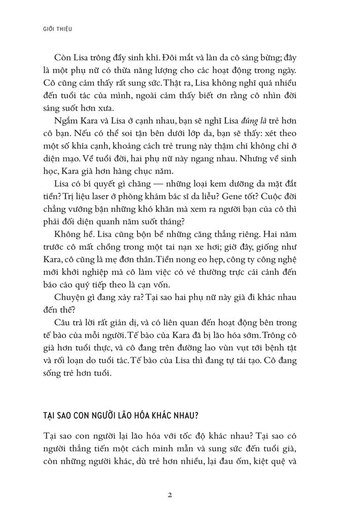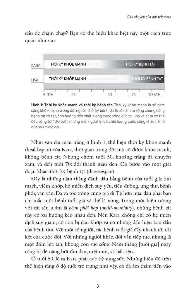 Việc phát hiện ra telomere ở đầu mút nhiễm sắc thể đưa tiến sĩ Elizabeth Blackburn, tác giả chính của cuốn sách, cùng hai đồng nghiệp đoạt giải Nobel sinh lý và y khoa năm 2009. Khi ta ra đời, tolomere ở đầu mút nhiễm sắc thể bắt đầu mòn dần... Chính mức độ cạn sạch telomere kiểm soát mức độ và tốc độ lão hóa của ta.