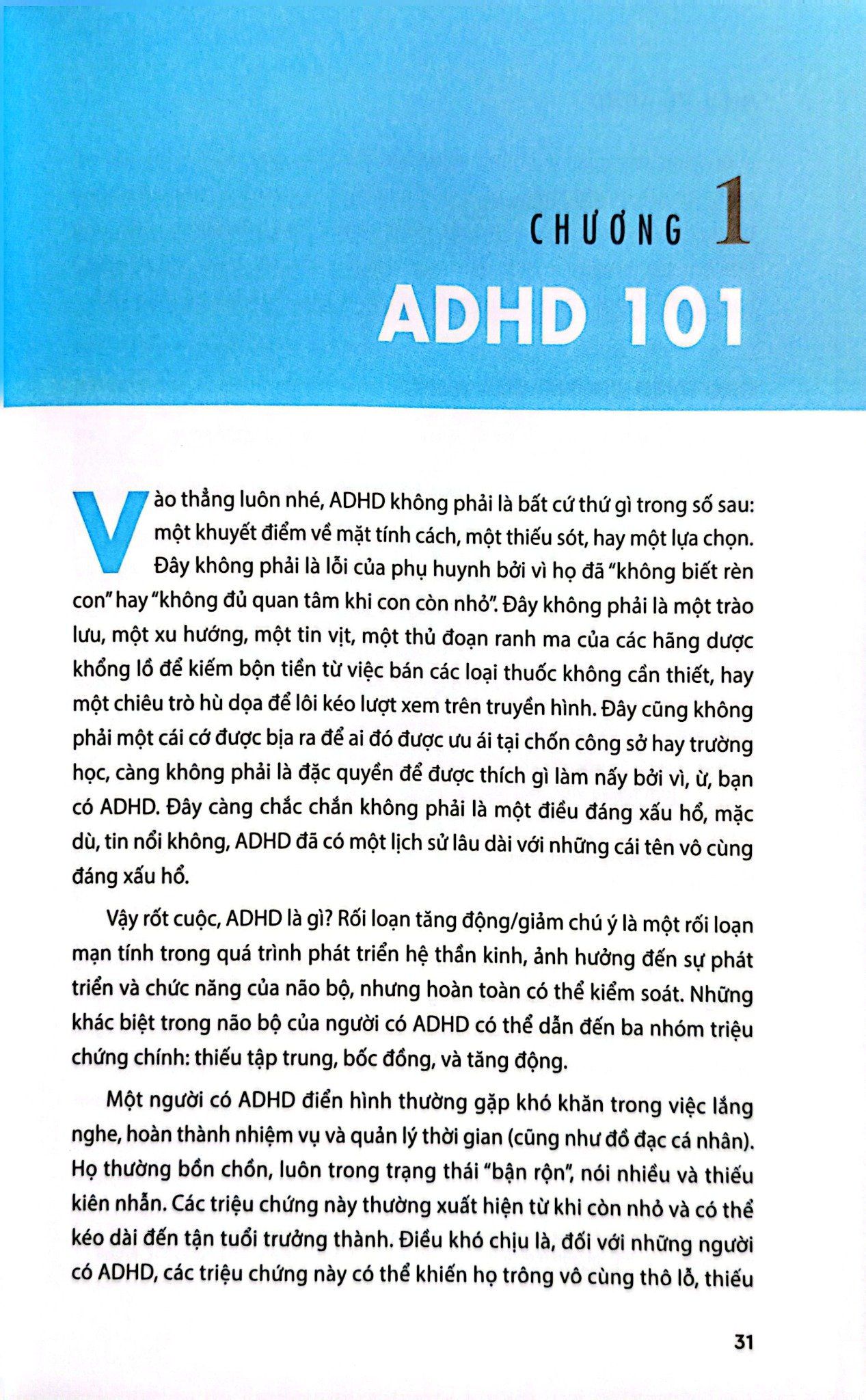Hiểu về ADHD khác biệt ở chỗ nó không tìm cách “sửa” bạn. Ngay từ những trang đầu, thông điệp đã rõ ràng: ADHD không làm bạn kém giá trị hơn ai cả. Não bộ của bạn chỉ vận hành khác biệt – và chính sự khác biệt đó, nếu biết khai thác, có thể trở thành lợi thế. Cuốn sách đưa bạn vào hành trình nhận diện và phá bỏ những định kiến đã bám rễ quá lâu, để thay thế bằng một cách nhìn mới: coi ADHD là một dạng đa dạng thần kinh, với những thử thách riêng nhưng cũng chứa đựng vô số sức mạnh tiềm ẩn.