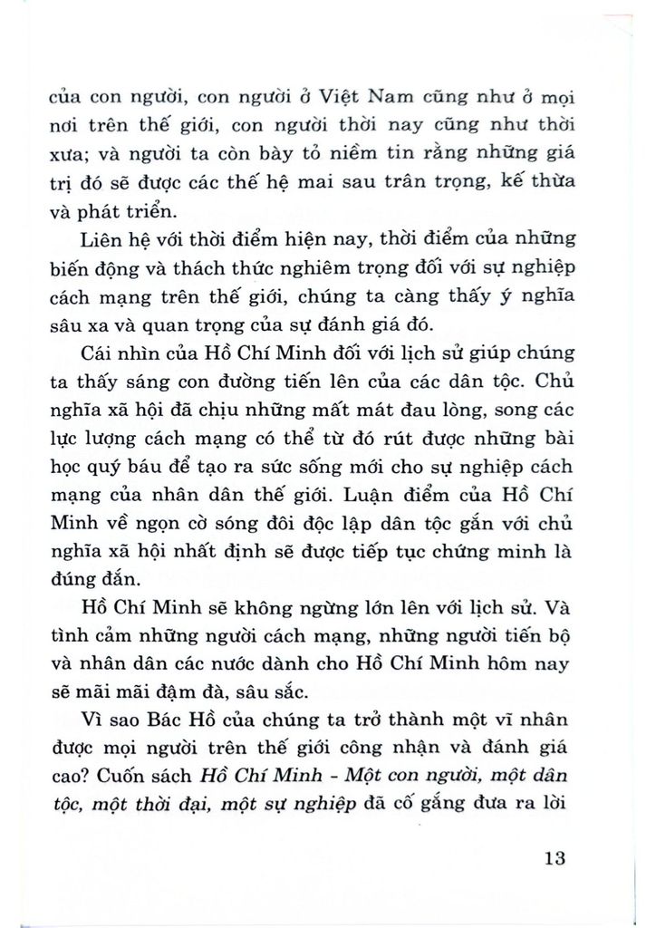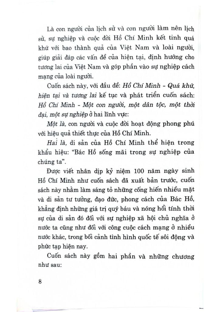 Cuốn sách phân tích ,khẳng định những cống hiến nhiều mặt và di sản tư tưởng, đạo đức, phong cách của Bác Hồ, nhấn mạnh những giá trị quý báu và mang đậm tính thời sự của di sản đó đối với sự nghiệp xây dựng chủ nghĩa xã hội ở nước ta cũng như đối với công cuộc cách mạng ở nhiều nước khác nhau trên thế giới.