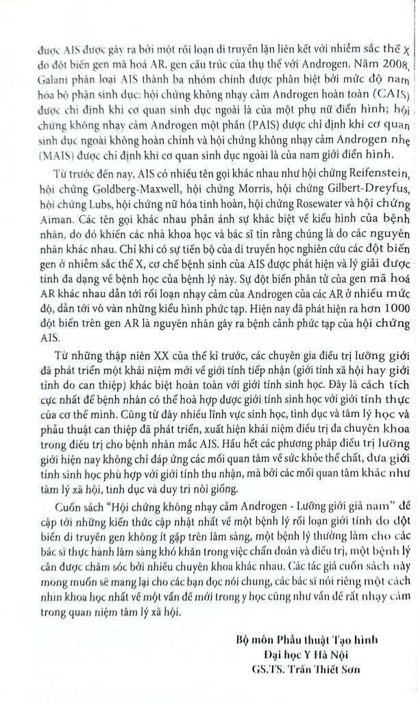Hội Chứng Không Nhạy Cảm Androgen Lưỡng Giới Giả Nam - ĐH Y Hà Nội, Trần Thiết Sơn