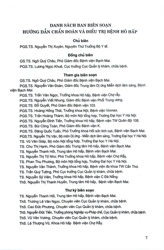 Cuốn sách “Hướng dẫn chẩn đoán và điều trị bệnh hô hấp” được xây dựng với sự nỗ lực cao của các nhà khoa học đầu ngành hô hấp của Việt Nam, sách bao gồm 38 bài hướng dẫn chẩn đoán và điều trị các bệnh hô hấp, trong đó tập trung chủ yếu vào công tác thực hành chẩn đoán chẩn đoán và điều trị, do vậy, sẽ rất hữu ích cho các thầy thuốc đa khoa, chuyên khoa trong thực hành hàng ngày.