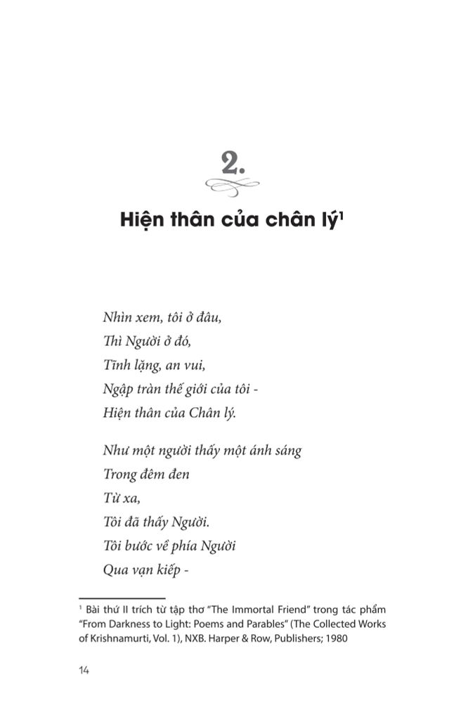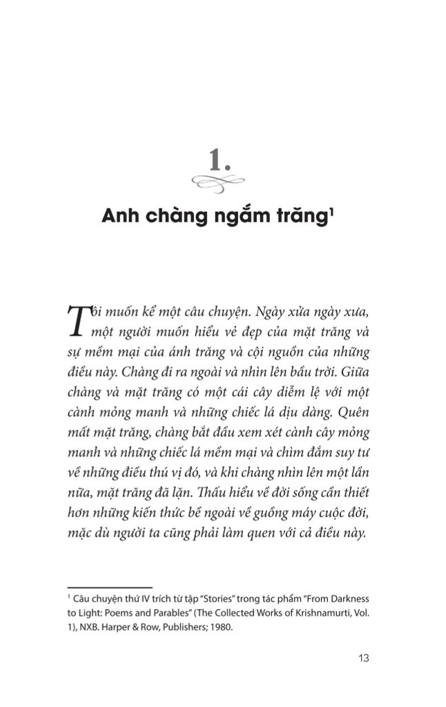 Jiddu Krishnamurti là một trong những triết gia, nhà tâm linh vĩ đại nhất mà thế giới từng biết. Ngài là nhà diễn thuyết tâm linh tài năng, về các chủ đề như mục đích của thiền định, mối quan hệ giữa con người, và phương cách để tạo nên sự thay đổi xã hội tích cực trên phạm vi toàn cầu…