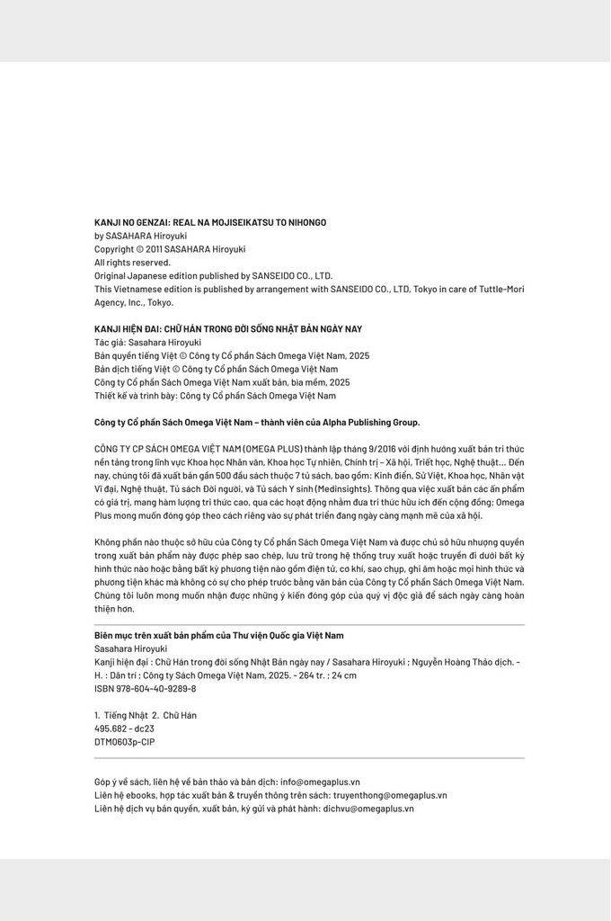 “Kanji hiện đại - Chữ Hán trong đời sống Nhật Bản hiện nay” - của tác giả Hiroyuki Sasahara nằm trong bộ sách Kanji gồm 2 cuốn "Kanji hiện đại - Chữ Hán trong đời sống Nhật Bản ngày nay” và "Kanji - Lịch sử phát triển và biến hóa của chữ Hán ở Nhật Bản" do Omega+ phát hành.