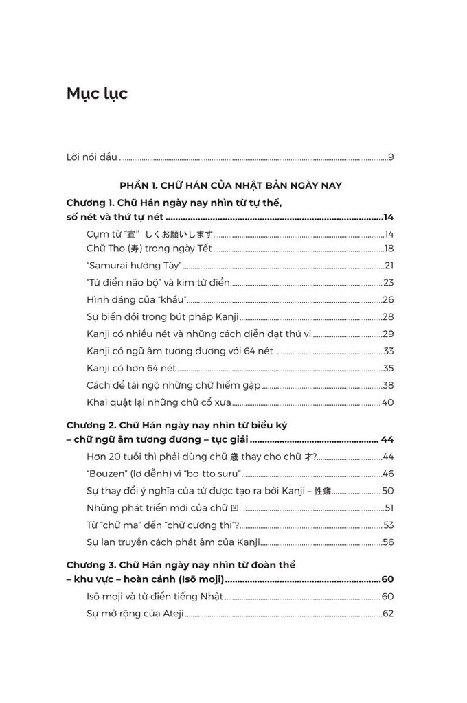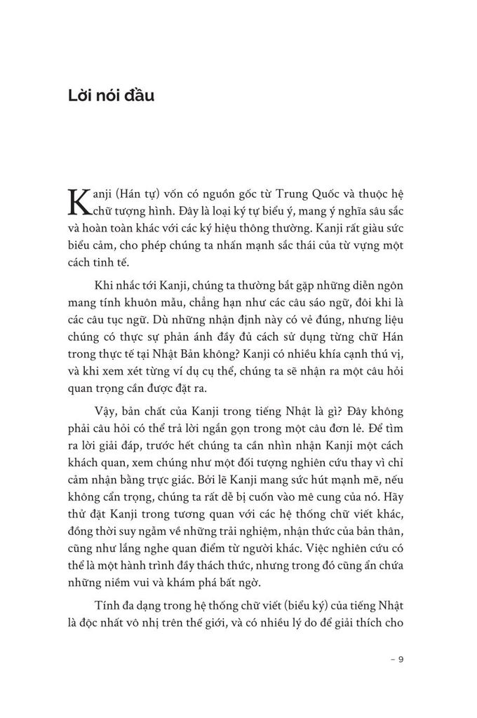 Bên cạnh đó, cuốn sách cũng đề cập đến ảnh hưởng của chữ Hán trong các lĩnh vực như thực phẩm, tiền tệ và giáo dục, cũng như mối liên hệ với các quốc gia sử dụng chữ Hán khác như Trung Quốc và Việt Nam. Với cách tiếp cận toàn diện và sâu sắc, Kanji hiện đại là một tài liệu quý giá cho những ai quan tâm đến ngôn ngữ và văn hóa Nhật Bản.