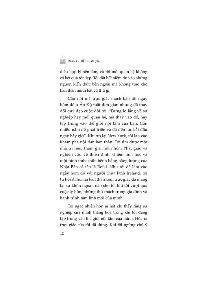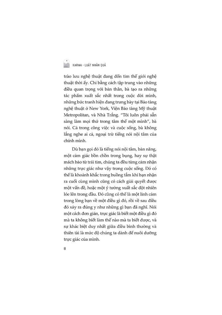 Cuốn sách ‘Karma – Luật nhân quả’ là một sự kết hợp của thế giới nội tâm, tâm linh với sự nghiệp cá nhân. Chỉ khi sự nghiệp và cuộc sống của bạn hòa hợp với những thứ bên trong con người bạn, nó mới tạo ra hành động và giá trị thực sự. Khi đạt được sự đồng nhất này, bạn sẽ tự tin hơn, có năng lực hơn và thành công theo cách riêng của mình. Thay vì chạy theo chuẩn mực xã hội, bạn sẽ học cách lắng nghe chính mình, từ bỏ việc sống theo mong đợi của người khác, và xác định lại thành công theo cách riêng.