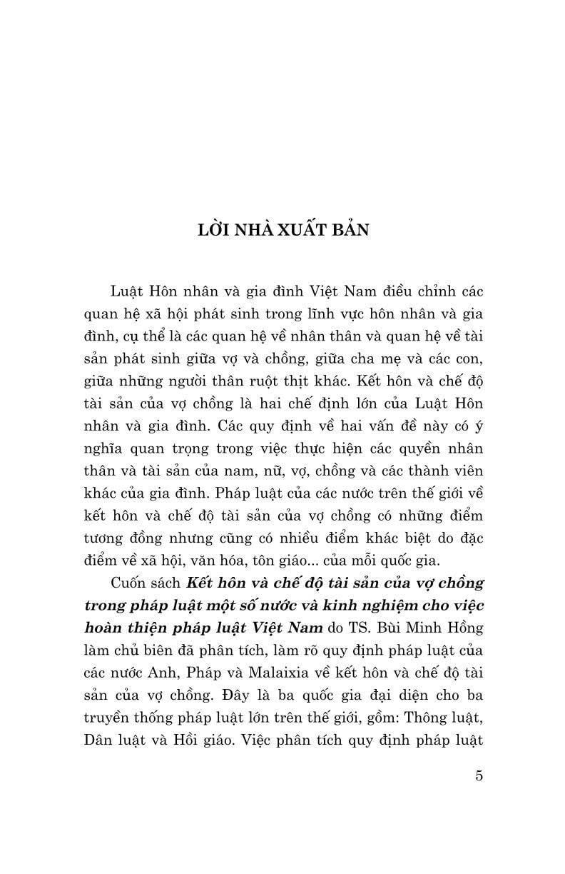 Kết Hôn Và Chế Độ Tài Sản Của Vợ Chồng Trong Pháp Luật Một Số Nước Và Kinh Nghiệm Cho Việc Hoàn Thiện Pháp Luật Việt Nam - TS. Bùi Minh Hồng (Chủ Biên)