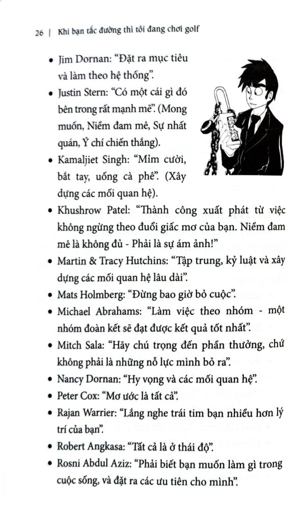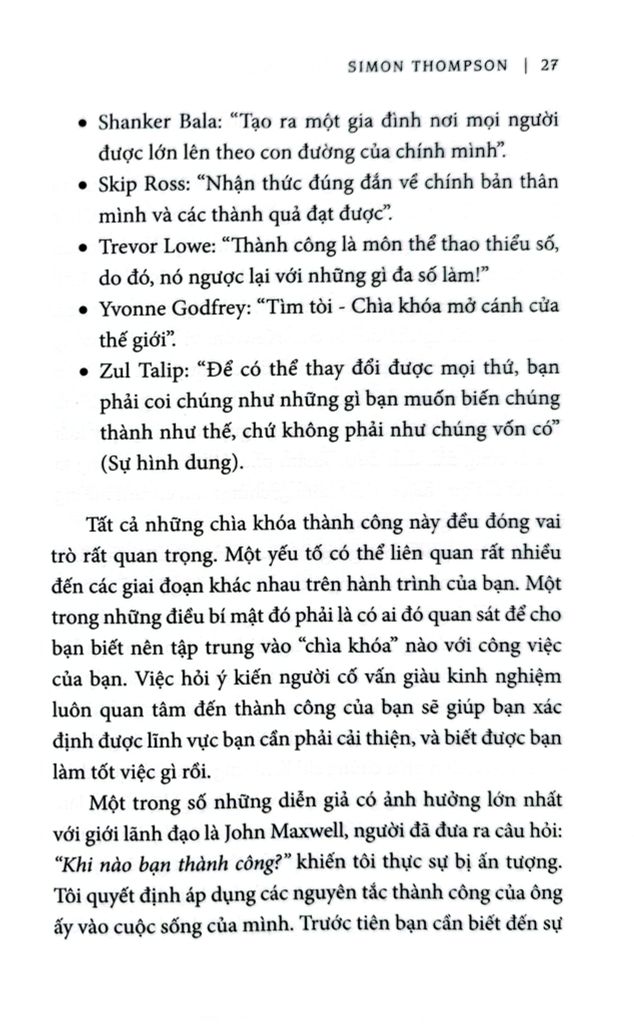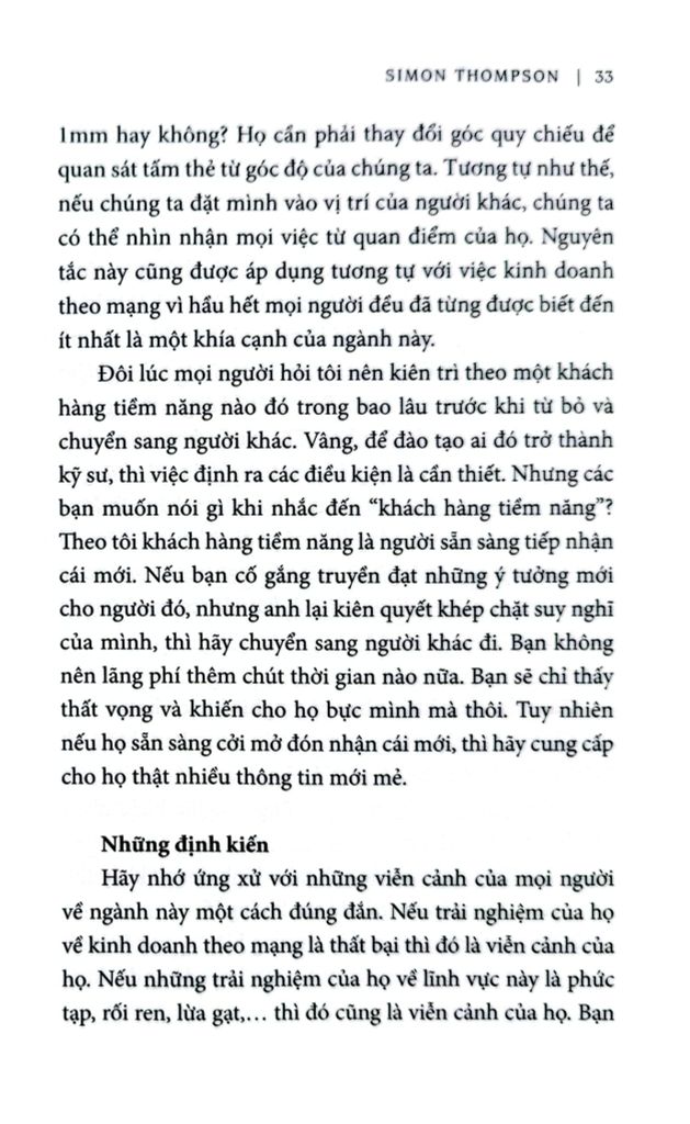 Simon Thompson là nhà lãnhd dạo nổi tiếng thành công trong lĩnh vực kinh doanh theo mạng năng động với mạng lưới đa quốc gia. Được đúc kết qua 15 năm kinh nghiệm thực tế, ông nêu ra những ý tưởng giúp đánh giá, theo đuổi công việc kinh doanh theo mạng như một phương tiện để hiện thực hóa giấc mơ và mục tiêu trong cuộc sống. KHI BẠN TẮC ĐƯỜNG THÌ TÔI ĐANG CHƠI GOLF không bàn về những khía cạnh lý thuyết của lĩnh vực kinh doanh theo mạng, mà hơn hết, đó là cẩm nang hướng dẫn cụ thể về cách thức đưa bạn tiến lên vị trí cao nhất.