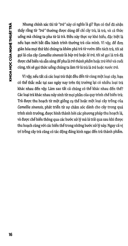 Với cách tiếp cận đơn giản, dễ hiểu, tác phẩm không yêu cầu người đọc phải là một chuyên gia để có thể nắm bắt. Ngay cả những người mới bắt đầu hành trình khám phá trà cũng có thể dễ dàng nắm vững các nguyên tắc cơ bản, từ cách trồng và thu hoạch, đến phân loại và đánh giá trà. Hơn thế nữa, cuốn sách còn giúp độc giả hiểu được sự tương tác kỳ diệu giữa khoa học và thiên nhiên, giữa các thành phần hóa học trong lá trà và nghệ thuật chế biến tinh tế, tạo ra những tách trà đầy hương vị.