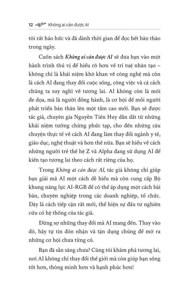 Một trong những điểm mạnh nhất của cuốn sách là không chỉ giúp người đọc hiểu về công nghệ AI, mà còn hướng dẫn cách tư duy về AI. Thay vì sợ hãi hay chạy theo công nghệ một cách mù quáng, chúng ta cần tiếp cận AI với tư duy phản biện, sáng tạo và linh hoạt.