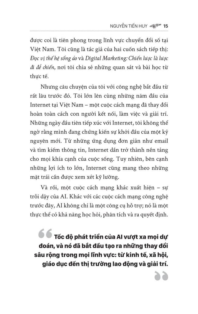 - Góc nhìn toàn diện từ quá khứ đến tương lai: Không chỉ đơn thuần giới thiệu công nghệ, cuốn sách bắt đầu với lịch sử Internet và cách AI phát triển (Phần 1: AI – Từ quá khứ đến hiện tại), giúp bạn hiểu rõ AI không phải xu hướng ngắn hạn mà là cuộc cách mạng tất yếu.