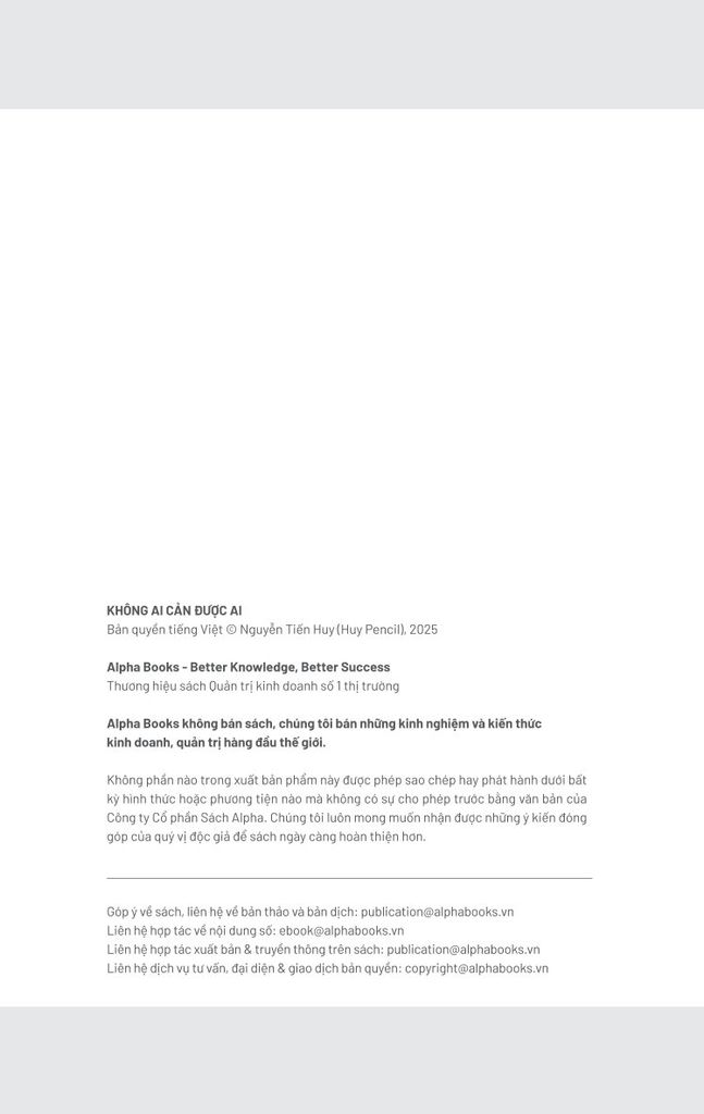 Đó chính là những câu hỏi trung tâm mà Không ai cản được AI của tác giả Nguyễn Tiến Huy sẽ giải đáp. Không đưa ra những lời tiên tri bi quan hay viễn tưởng xa vời, cuốn sách này tập trung vào một góc nhìn thực tế, gần gũi và giàu tính ứng dụng, giúp người đọc hiểu AI từ căn gốc để tận dụng nó trong sự nghiệp và cuộc sống.