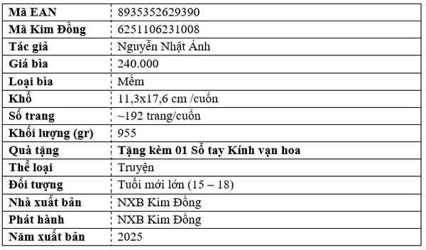 SKU: 8935352629390 Tình trạng: Còn hàng NXB/Phát hành: Kim Đồng Tác giả: Nguyễn Nhật Ánh