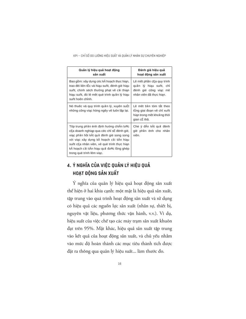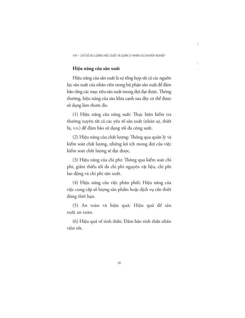 Cuốn sách mở đầu bằng việc làm rõ bản chất và vai trò của quản lý hiệu suất – một khái niệm thường bị đánh đồng với “đánh giá kết quả”. Tác giả phân tách rõ ràng giữa hai khái niệm này, nhấn mạnh rằng KPI không đơn thuần là công cụ đo lường, mà là một hệ thống quản lý tổng thể giúp doanh nghiệp nâng cao hiệu suất, kiểm soát chất lượng, tối ưu hóa chi phí và phát huy nguồn lực một cách hiệu quả.