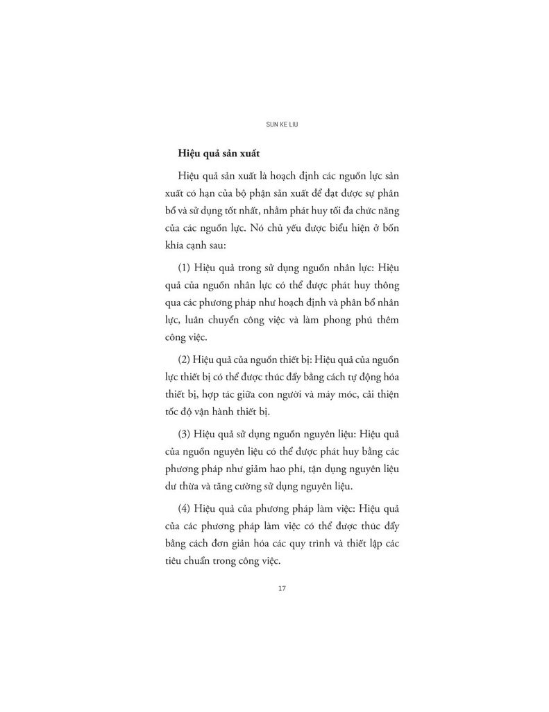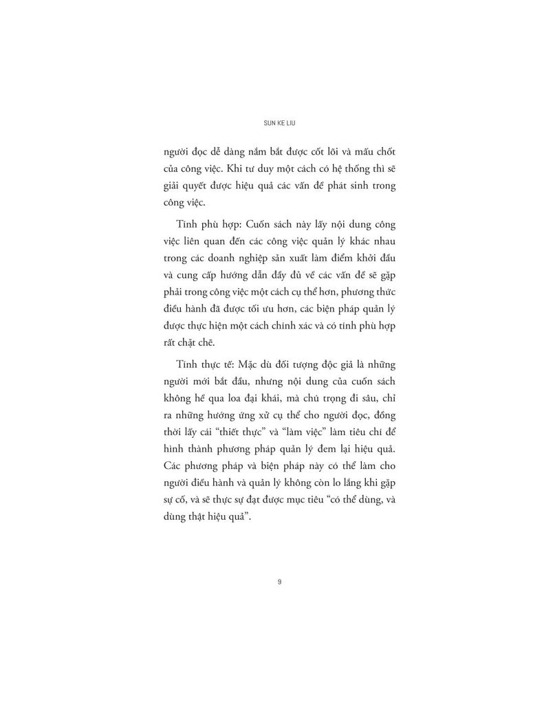 Với phong cách truyền đạt mạch lạc, có hệ thống và gần gũi với người đọc, Sun Ke Liu mang lại những hướng dẫn dễ hiểu, dễ làm theo nhưng vẫn đảm bảo tính chuyên sâu cần thiết cho các nhà quản lý đang tìm kiếm giải pháp thực tế để nâng cao hiệu suất vận hành.