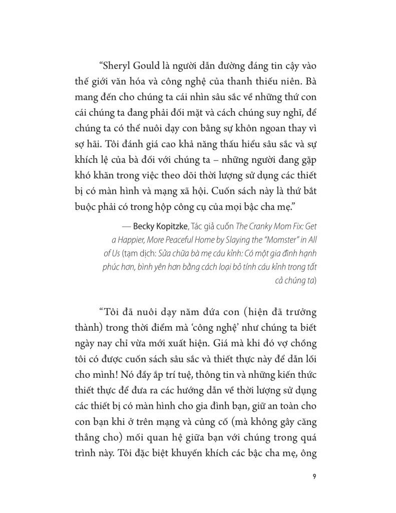 Gửi thế hệ cha mẹ kiên định đầu tiên đang cảm thấy choáng ngợp trong việc định hướng cách sử dụng công nghệ của con mình, những người đang tìm cách mang lại sự cân bằng cùng các hướng dẫn, giữ an toàn cho con và kết nối với tâm hồn con: Cuốn sách này dành cho bạn.
