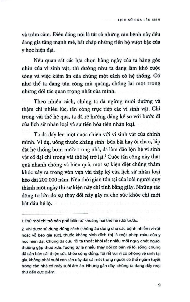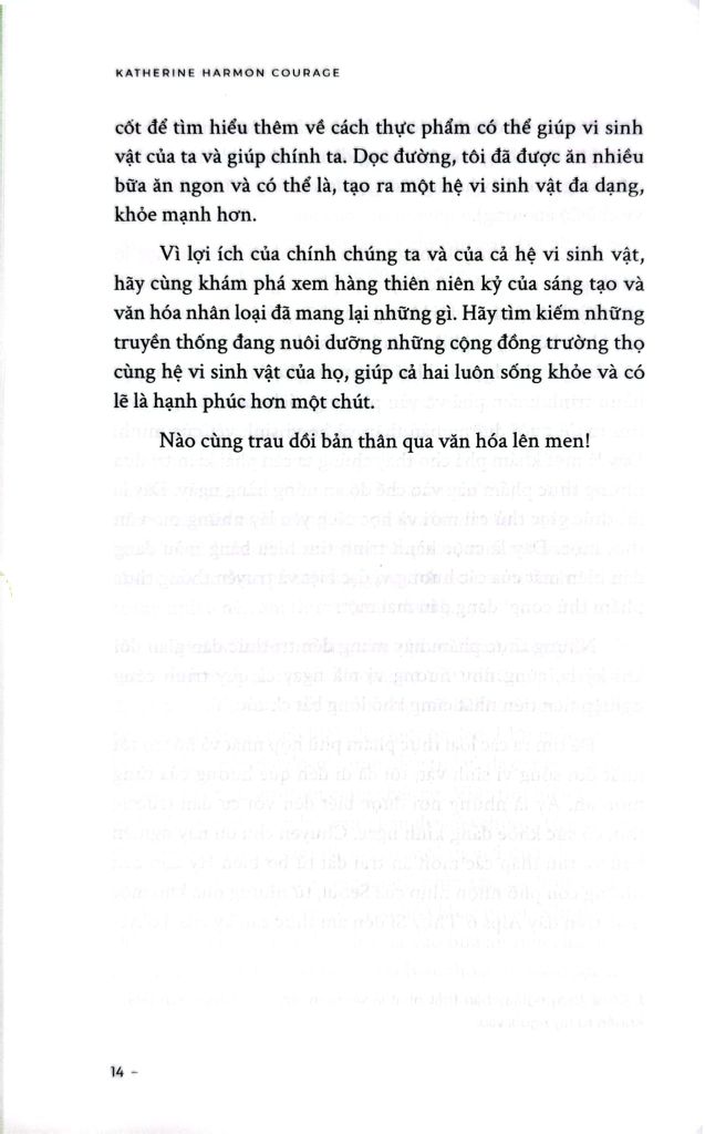 Con người không bao giờ tồn tại đơn độc. Bên trong mỗi chúng ta là một thế giới vô hình gồm hàng trăm nghìn tỉ vi sinh vật, âm thầm tham gia điều hòa tiêu hóa, miễn dịch, thần kinh và sức khỏe tổng thể. Thế nhưng, trong suốt nhiều thập kỷ, thế giới vi mô ấy lại thường bị nhìn nhận như kẻ thù cần tiêu diệt. “Lịch sử của Lên men: Cách thực phẩm truyền thống nuôi dưỡng hệ vi sinh” của Katherine Harmon Courage ra đời để đặt lại cách chúng ta hiểu về mối quan hệ giữa con người và vi sinh vật – không phải bằng nỗi sợ, mà bằng sự thấu hiểu và cộng tác.