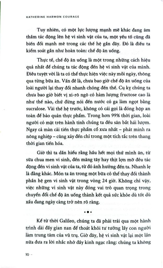 “Khó mà tin rằng chỉ cần điều chỉnh vài yếu tố trong khẩu phần là đủ chữa bệnh mạn tính hoặc ngăn phát bệnh. Nhưng bằng cách tìm hiểu thêm về cách thức thực phẩm nuôi dưỡng con người và vi sinh vật, ta sẽ thấy rõ việc ăn uống ảnh hưởng đến sức khỏe ra sao, với vi sinh vật giữ vai trò trung gian. Hàng nghìn năm thử nghiệm ẩm thực, sai rồi sửa, tinh chỉnh dần dần hẳn không thể vô nghĩa.”