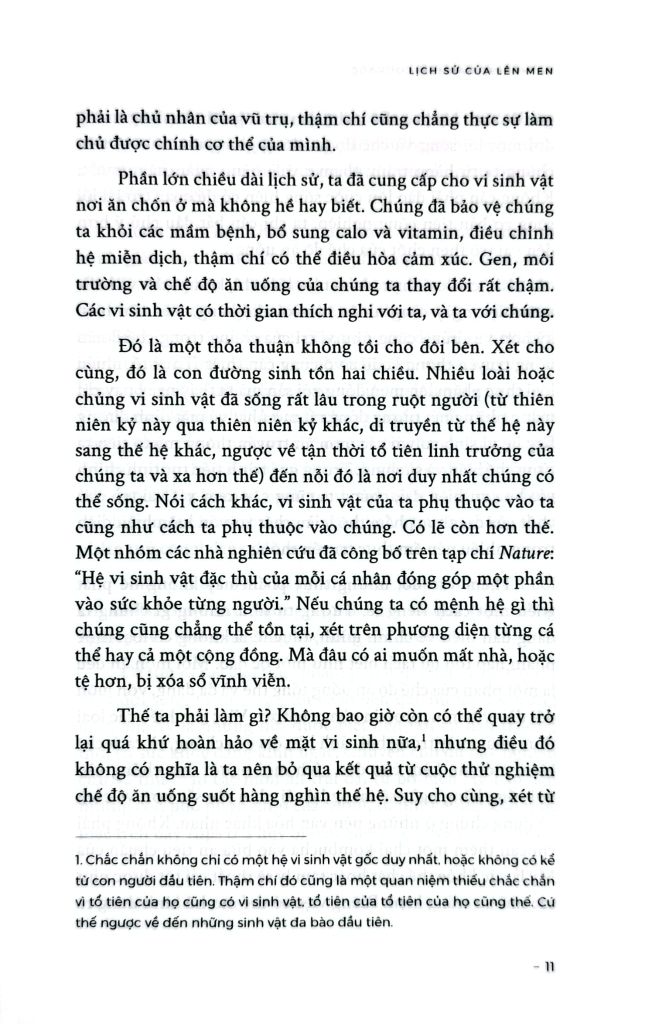 Kết nối khoa học, lịch sử và văn hóa ẩm thực thường nhật, “Lịch sử của Lên men” mang đến một góc nhìn mới về chăm sóc sức khỏe bền vững: không phải bằng cách tiêu diệt vi khuẩn, mà bằng cách học cách chung sống và nuôi dưỡng thế giới vi mô bên trong chúng ta. Vì thế đây là một cuốn sách dành cho những ai quan tâm đến sức khỏe, khoa học, ẩm thực truyền thống và mối quan hệ sâu xa giữa con người với hệ sinh thái vô hình đã luôn đồng hành cùng nhân loại