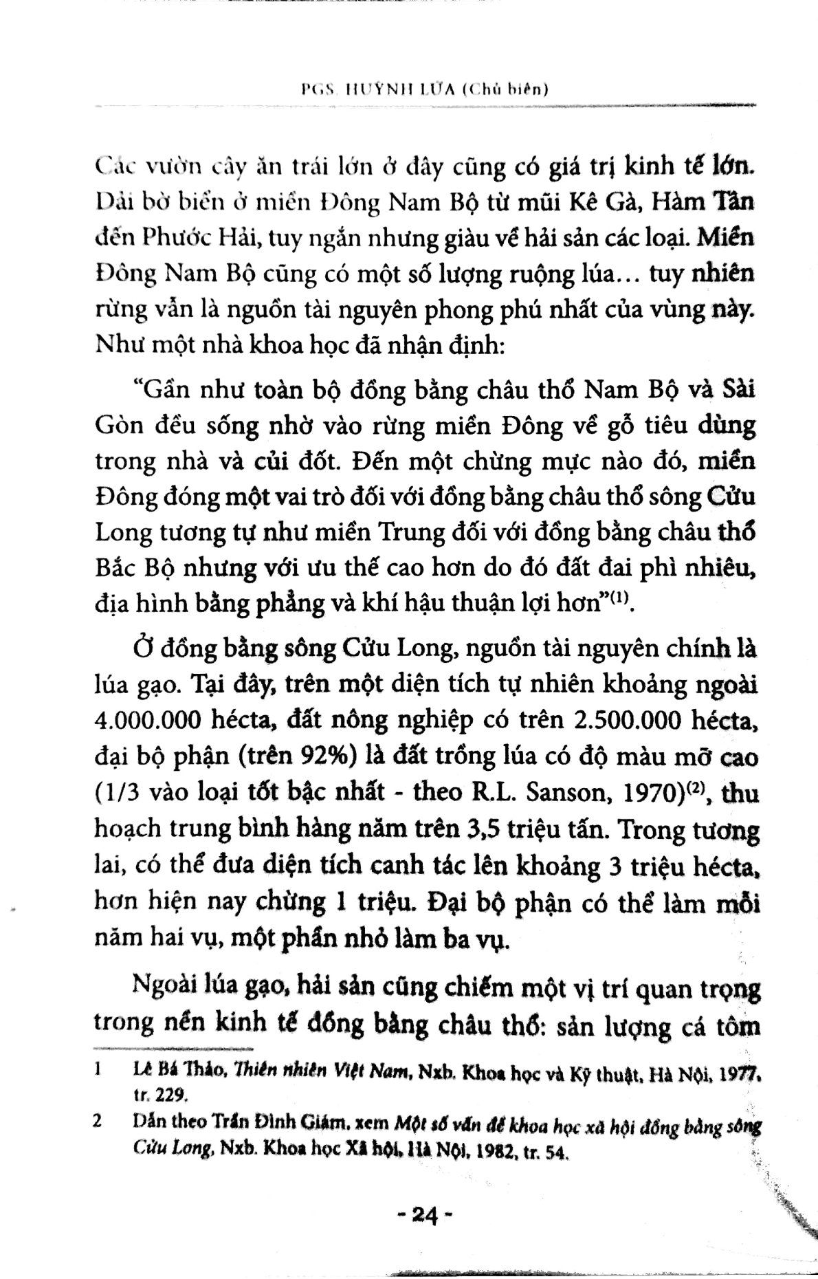 Hơn một chục năm qua, từ sau ngày đánh sụp chế độ thực dân mới của Mỹ, những biến đổi sâu sắc về xã hội đang diễn ra ở vùng này, trên một chục triệu nhân dân đồng bằng sông Cửu Long đang chung sức sản xuất và xây dựng, làm cho đồng bằng sông Cửu Long thành vùng nông thôn mới xã hội chủ nghĩa và xứng đáng ở vị trí hàng đầu trên mặt trận nông nghiệp. Bằng các biện pháp thâm canh, tăng vụ, ứng dụng tiến bộ khoa học kỹ thuật, mở rộng diện tích canh tác, thay đổi cơ cấu sản xuất, nhân dân đồng bằng sông Cửu Long không những từng bước đưa năng suất, sản lượng lương thực, thực phẩm tăng lên mà còn mở ra một bộ mặt mới, một triển vọng mới của vùng châu thổ này: một vùng nông nghiệp toàn diện, một vùng nông sản nguyên liệu cho nông nghiệp và xuất khẩu, một vùng công nghiệp chế biến. Đồng bằng sông Cửu Long cùng với miền Đông Nam Bộ và một số địa phương khác gắn với Thành phố Hồ Chí Minh - trung tâm công nghiệp, khoa học kỹ thuật, giao thương quốc tế - thành một khu vực lớn có cơ cấu kinh tế công nông nghiệp, đang đóng góp rất tích cực và có hiệu quả vào việc xây dựng cơ cấu công nông nghiệp cả nước.
