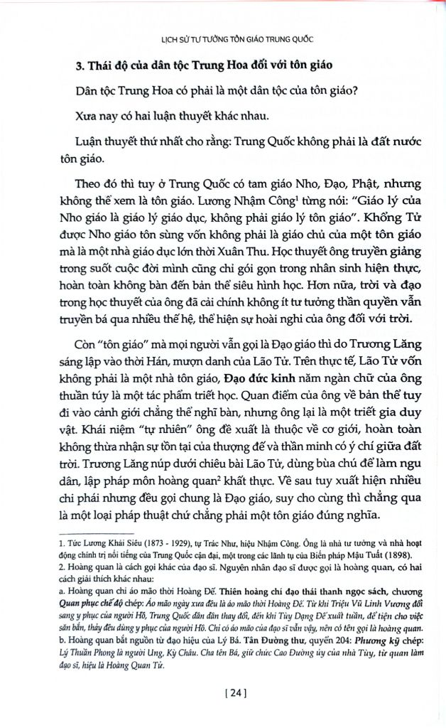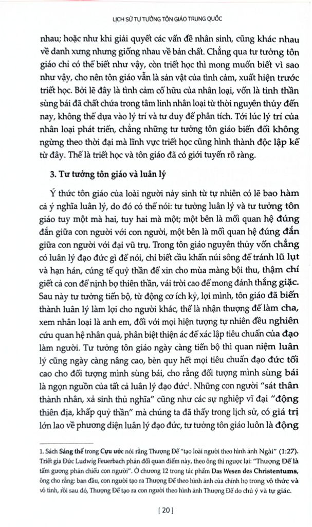 Đối với độc giả Việt Nam, Lịch Sử Tư Tưởng Tôn Giáo Trung Quốc - Từ Cổ Đại Đến Đầu Thế Kỷ XX cũng là một chìa khóa giúp người đọc tiếp cận sâu sắc hơn với quá trình hình thành và biến đổi của các dòng tư tưởng từng có ảnh hưởng lớn đến đời sống tinh thần và văn hóa Việt Nam, đặc biệt là Nho giáo, Phật giáo và Đạo giáo. Trong bối cảnh ngày càng cần đến đối thoại liên văn hóa và hiểu biết tôn giáo một cách tỉnh táo, cuốn sách mang đến một nền tảng tri thức vững chắc để suy ngẫm không chỉ về Trung Quốc, mà cả về chính chúng ta - một dân tộc từng tiếp nhận, biến đổi và sáng tạo nên bản sắc riêng từ những ảnh hưởng tư tưởng khu vực.
