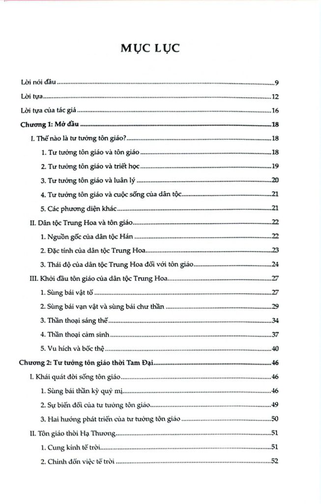Lịch Sử Tư Tưởng Tôn Giáo Trung Quốc - Từ Cổ Đại Đến Đầu Thế Kỷ XX là một trong những công trình sớm nhất và nền tảng nhất đặt nền móng cho lĩnh vực nghiên cứu này. Tác giả của sách - Vương Trị Tâm, một học giả Cơ Đốc giáo đồng thời là nhà nghiên cứu văn hóa uyên bác đầu thế kỷ XX - đã dày công biên soạn tác phẩm trong bối cảnh xã hội Trung Quốc đang chuyển mình giữa truyền thống và hiện đại, giữa cơn khủng hoảng bản sắc và nỗ lực tìm lại căn cội tinh thần. Với sáu chương chính, cuốn sách bao quát toàn bộ lịch sử tư tưởng tôn giáo Trung Quốc từ thời tiền sử cho đến cận đại, từ tín ngưỡng vật tổ, sùng bái vạn vật, thần thoại sáng thế - cho đến sự hình thành của các hệ thống tư tưởng lớn như Nho giáo, Đạo giáo, Phật giáo, và sự du nhập của Cơ Đốc giáo, Hồi giáo. Không dừng lại ở việc liệt kê các tôn giáo hay mô tả bề nổi hiện tượng tín ngưỡng, Vương Trị Tâm đi sâu vào phân tích cách mà mỗi thời đại, mỗi tầng lớp xã hội - từ dân thường đến đế vương - đã tiếp nhận, điều chỉnh và tái định nghĩa các yếu tố tôn giáo ra sao để phù hợp với nhu cầu luân lý, chính trị và văn hóa của mình.