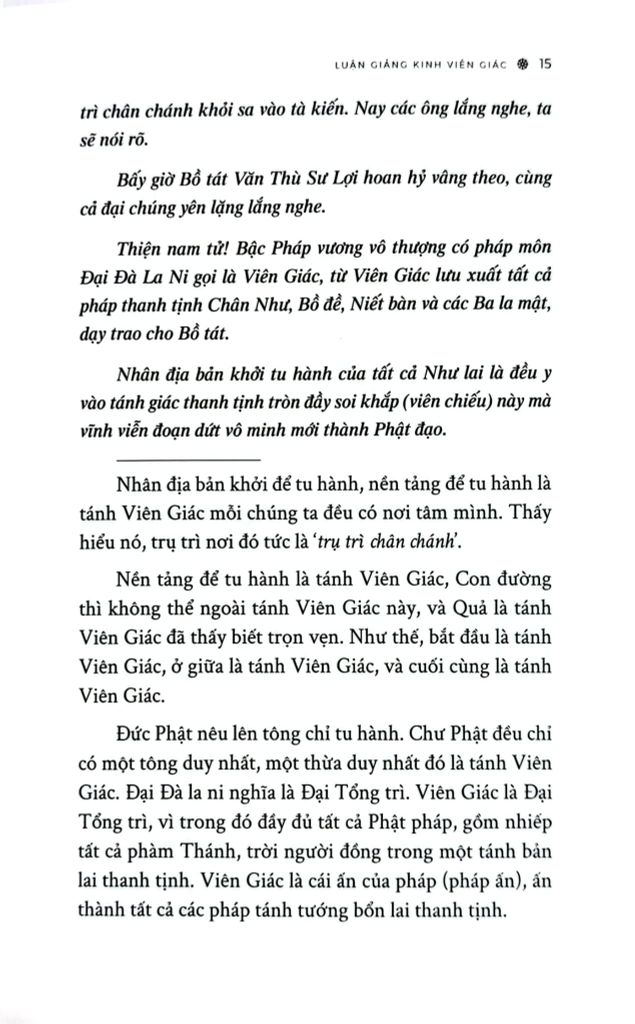 Về cốt lõi, Kinh Viên Giác khai thị rằng bản tâm giác ngộ vốn sẵn đủ nơi mỗi người, không do bên ngoài ban cho, cũng không phải là điều chỉ đạt được bằng sự tìm cầu vọng động. Con đường tu tập mà kinh chỉ bày hướng hành giả đến việc lìa chấp trước, vượt qua các phân biệt và vọng tưởng, trực nhận tự tánh thanh tịnh, từ đó tiến đến giải thoát viên mãn. Tinh thần “viên giác” trong kinh không chỉ nhấn mạnh trí tuệ rốt ráo, mà còn là sự trọn vẹn của một đời sống tu tập, nơi người học quay về tự tâm để nhận ra nền tảng thanh tịnh và an ổn.