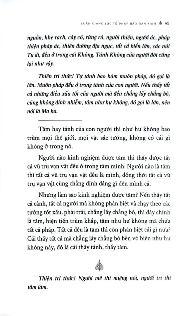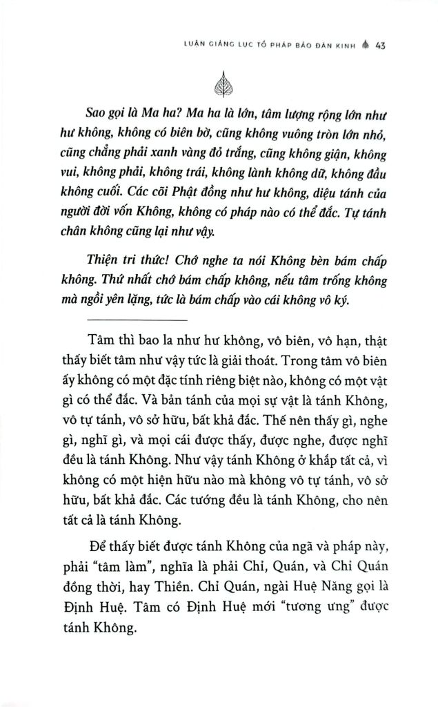 “Luận giảng Lục Tổ Pháp Bảo Đàn Kinh” được biên soạn nhằm giúp độc giả tiếp cận bộ kinh này một cách hệ thống, chính xác và có chiều sâu. Tác giả giải thích cặn kẽ theo từng ý, từng phân đoạn, làm rõ mạch văn, thuật ngữ và những điểm trọng yếu của giáo pháp Huệ Năng, từ đó hỗ trợ người đọc không chỉ hiểu kinh ở tầng văn nghĩa, mà còn có thể chiêm nghiệm và ứng dụng vào con đường tu học. Với văn phong nghiêm cẩn và định hướng thực hành, cuốn sách là tài liệu tham khảo quan trọng cho người nghiên cứu Thiền học, đồng thời là người bạn đồng hành hữu ích cho hành giả mong cầu tinh tấn trên lộ trình tu tập theo tinh thần Thiền tông.
