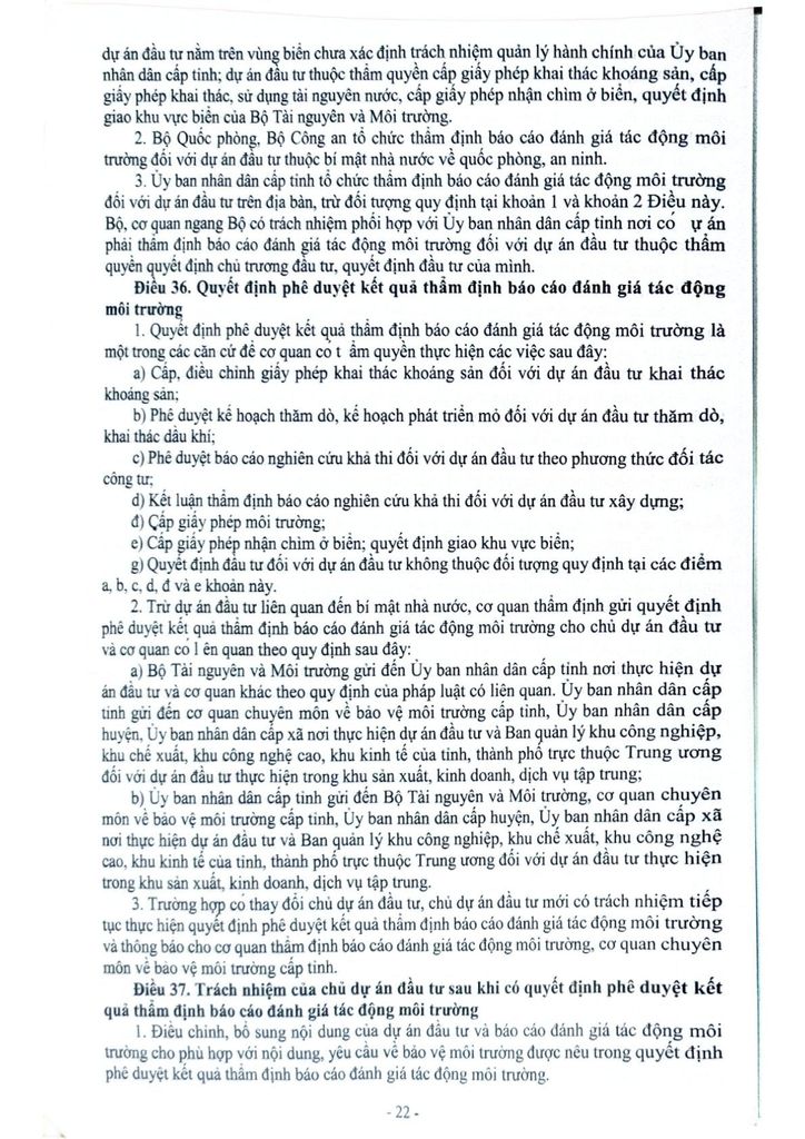 Thông tư số 02/2022/ TT ngày 10/01/2022 của bộ Tài nguyên và Môi trường Quy định chi tiết thi hành một số điều của Liaạt Bảo vệ môi trường