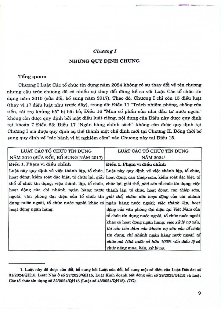 Cuốn sách Luật “Các tổ chức tín dụng năm 2024 – So sánh và bình luận” giúp các tổ chức tín dụng, chi nhánh ngân hàng nước ngoài, tổ chức mua bán, xử lý nợ… và người dân nhận diện nhanh, chính xác những nội dung mới, nội dung được sửa đổi, bổ sung của Luật, góp phần triển khai thi hành Luật được hiệu quả.