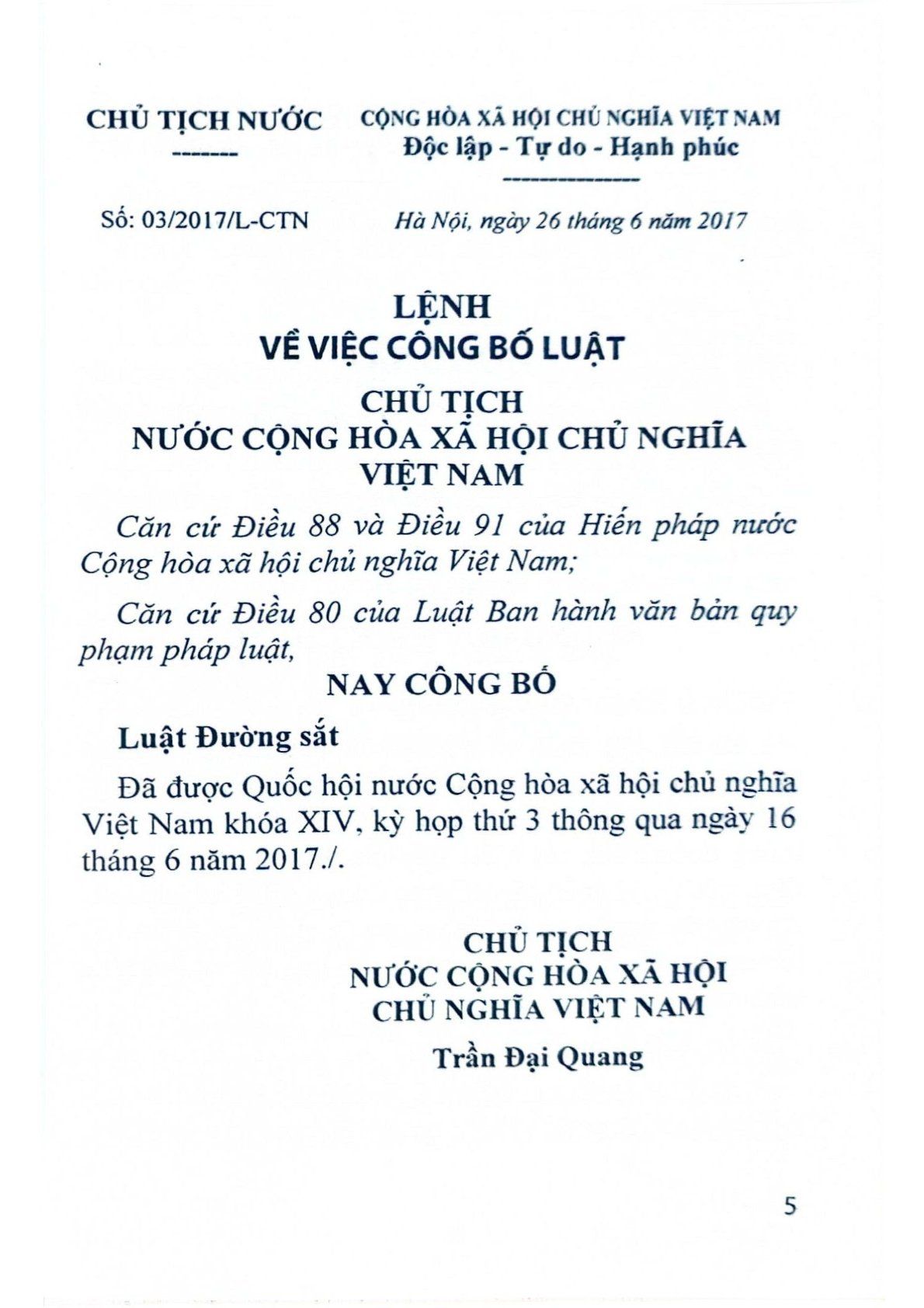 Luật Đường Sắt (Có Hiệu Lực Thi Hành Từ Ngày 01/7/2018) - Quốc Hội