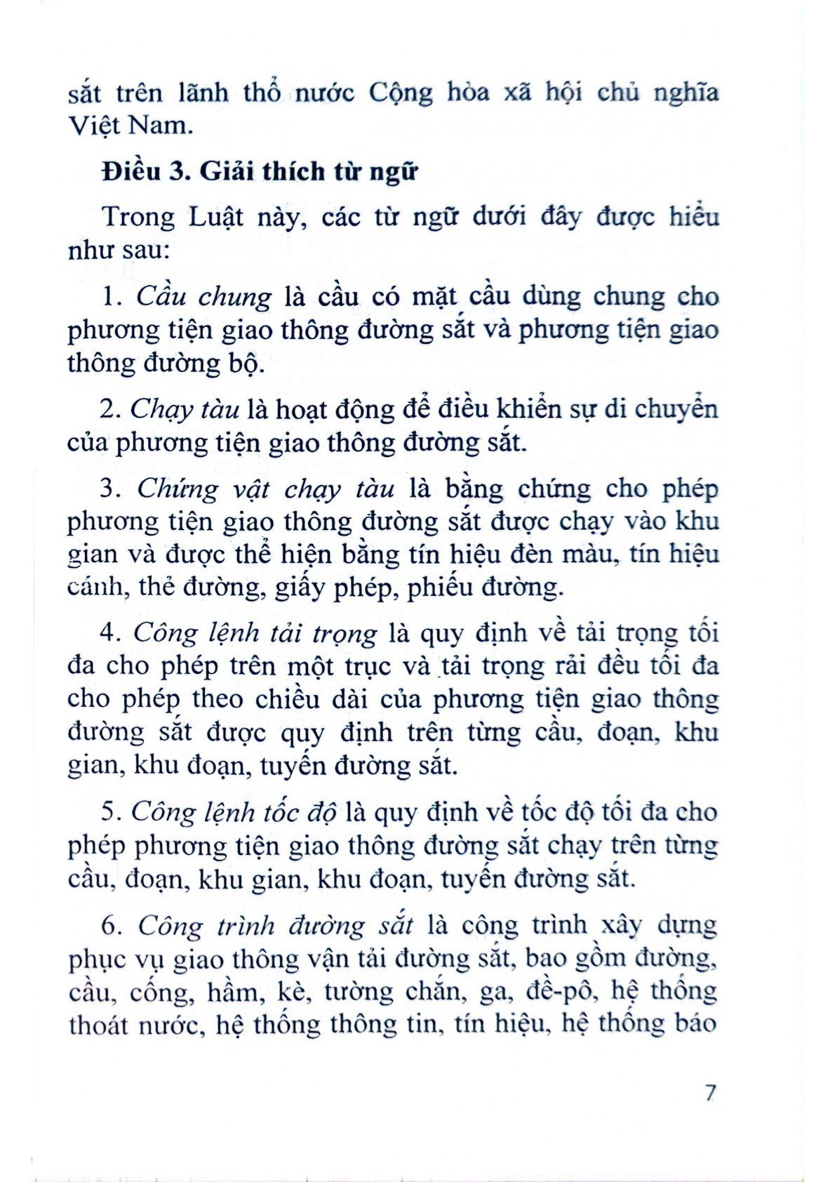 4. Công lệnh tải trọng là quy định về tải trọng tối đa cho phép trên một trục và tải trọng rải đều tối đa cho phép theo chiều dài của phương tiện giao thông đường sắt được quy định trên từng cầu, đoạn, khu gian, khu đoạn, tuyến đường sắt.