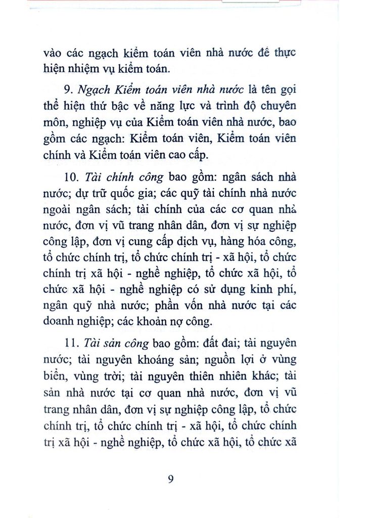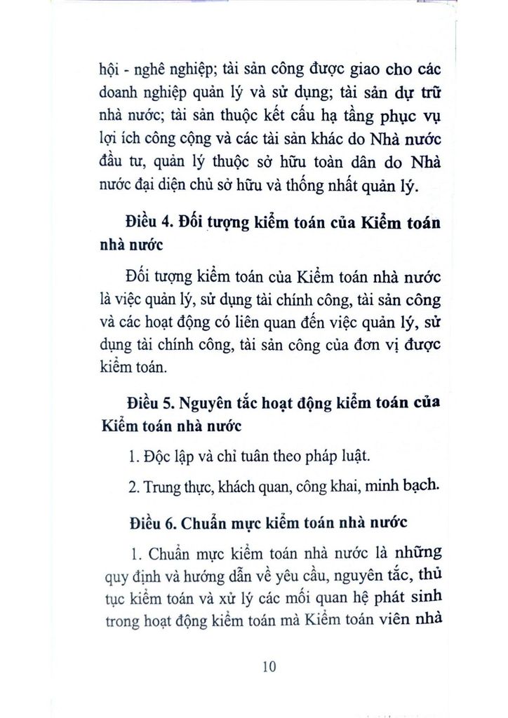 Luật kiểm toán Nhà nước gồm 9 chương, 73 điều quy định về chức năng, nhiệm vụ, quyền hạn, tổ chức và hoạt động của Kiểm toán nhà nước; nhiệm vụ, quyền hạn của kiểm toán nhà nước; nhiệm vụ, quyền hạn của kiểm toán viên nhà nước; quyền hạn và trách nhiệm của các cơ quan, tổ chức, cá nhân có liên quan với hoạt động kiểm toán nhà nước