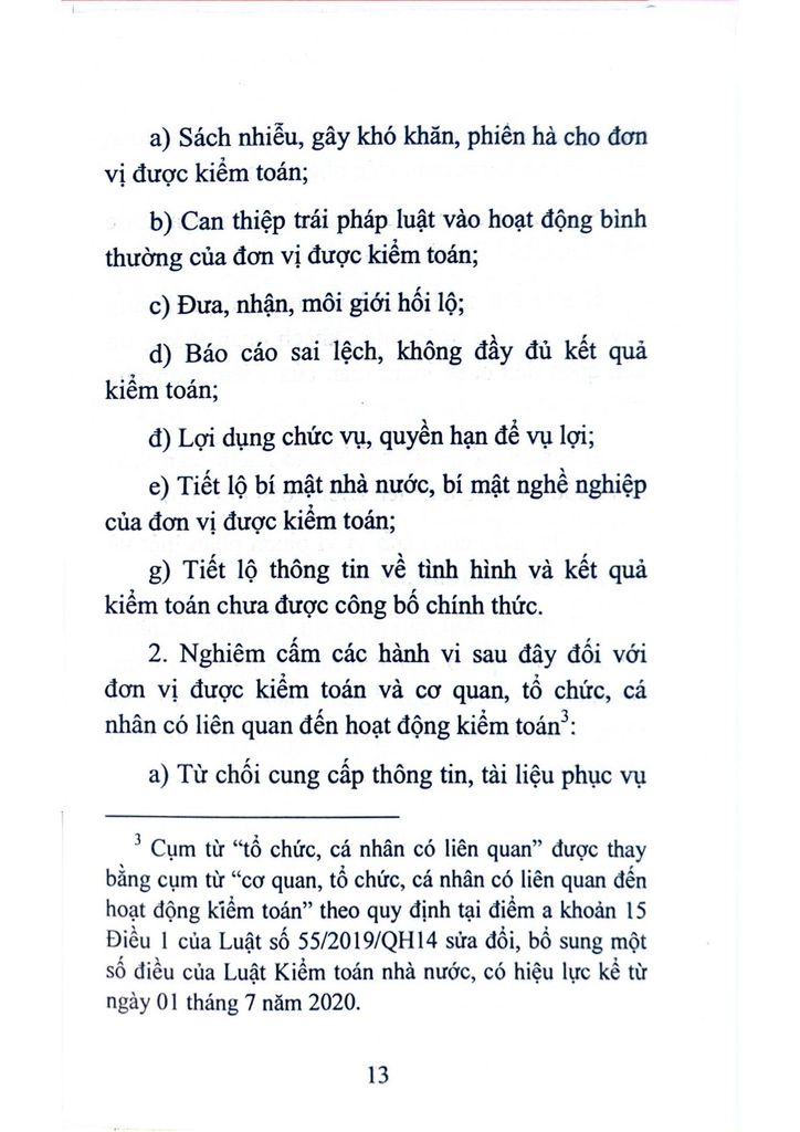 Luật kiểm toán Nhà nước số 81/2015/QH13 ngày 24 tháng 06 năm 2015 của Quốc hội, có hiệu lực kể từ ngày 01 tháng 01 năm 2016, được sửa đổi, bổ sung bởi: