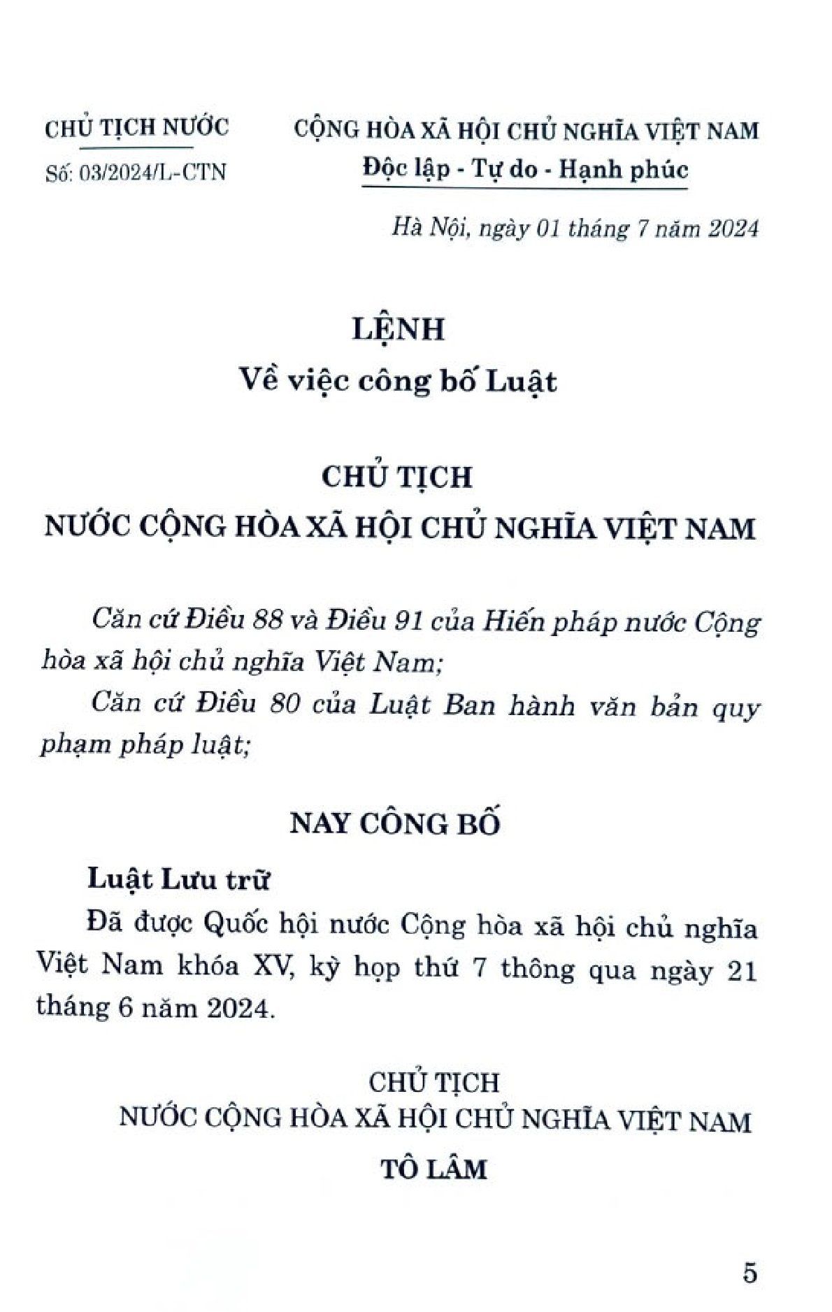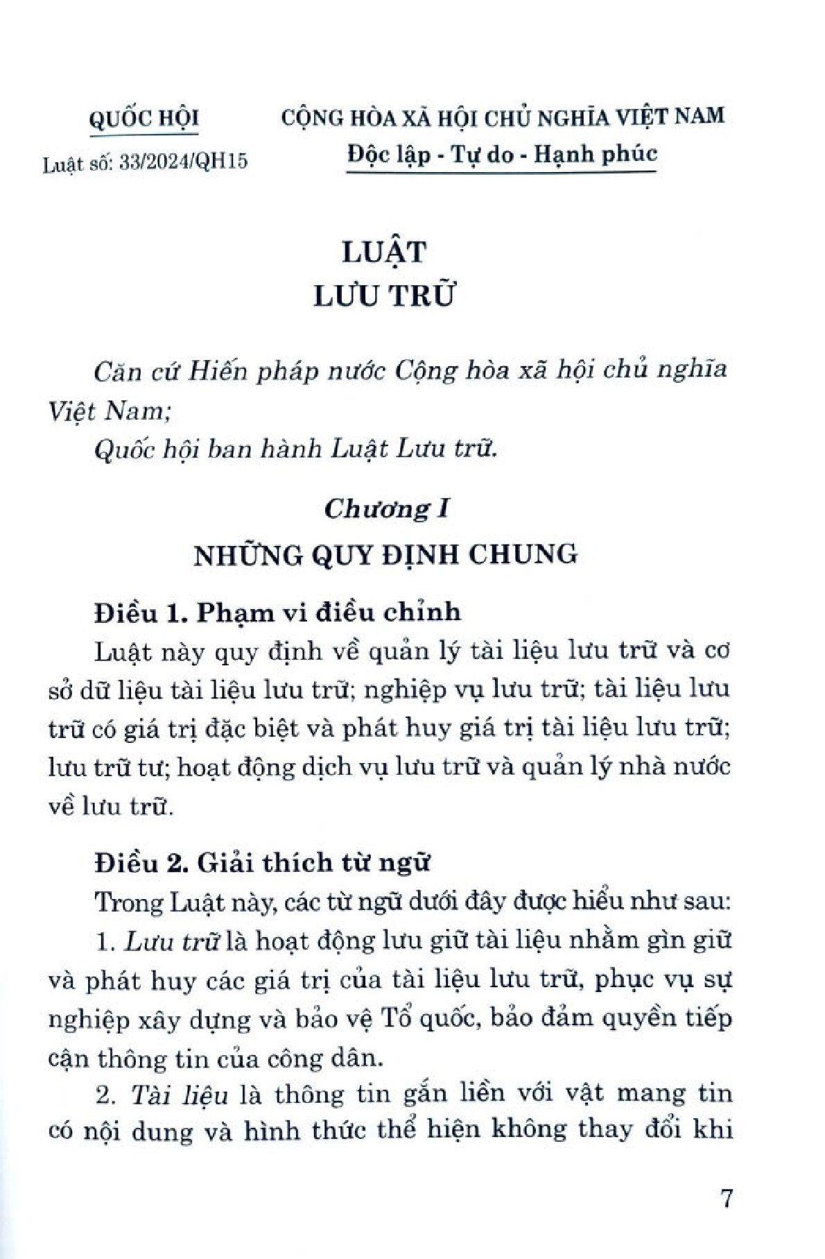 Luật Lưu Trữ Năm 2024 - Quốc hội (XB 2024)