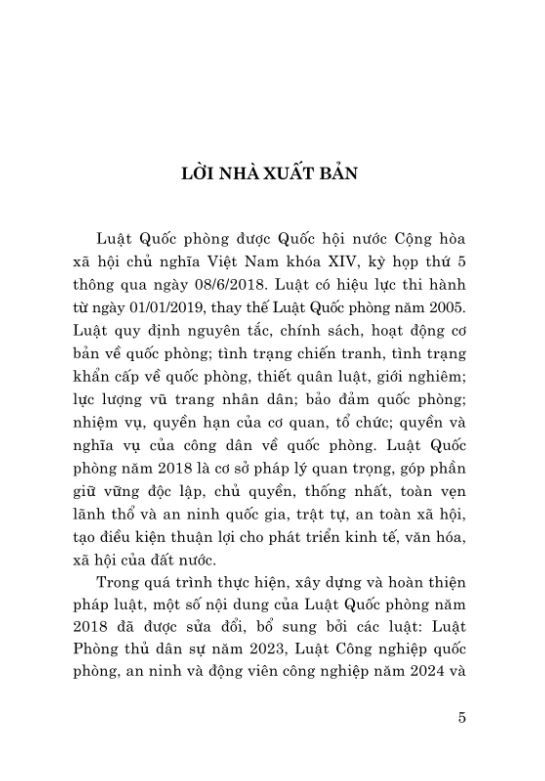 Luật Quốc Phòng Năm 2018 ( Sửa Đổi, Bổ Sung Năm 2023, 2024, 2025 ) - Quốc hội - NXB CTQG