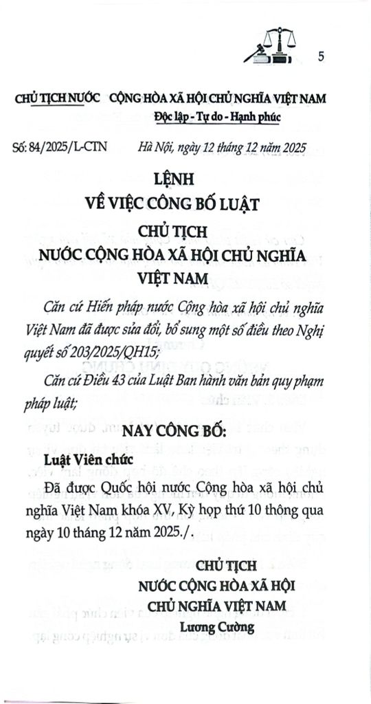 Luật Viên chức năm 2025, đây là văn bản luật mới vừa được Quốc hội khóa XV thông qua tại Kỳ họp thứ 10 vào ngày 10/12/2025.
