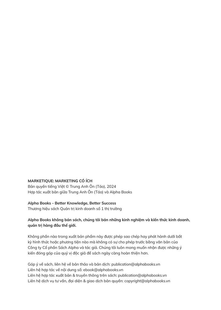 Với những yếu tố này, ""Marketique: Marketing Có Ích"" không chỉ là cuốn sách để đọc mà còn là một công cụ cần thiết cho bất kỳ ai muốn thành công trong ngành marketing tại Việt Nam.