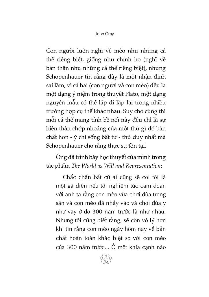 “Những chú mèo không phải lo nghĩ về việc cuộc đời có đáng sống hay không – đó là điều con người luôn trăn trở. Chính sự tự ý thức khiến con người rơi vào trạng thái bất ổn kéo dài – một trạng thái mà triết học cố chữa lành, nhưng chưa bao giờ triệt để.”