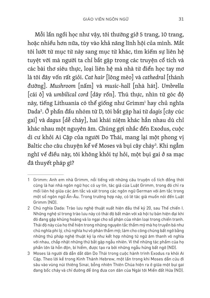 Từ nghệ thuật dịch cho đến tính trữ tình đáng ngạc nhiên trong ngôn ngữ ký hiệu, cuốn sách Mỗi từ là một chú chim đang chờ ta dạy hót là một hành trình lý thú xuyên qua thế giới của từ ngữ, chữ viết, những câu chuyện và ý nghĩa, đồng thời cũng là một bằng chứng tuyệt vời cho tài năng văn chương và đa ngôn ngữ xuất sắc của Tammet.